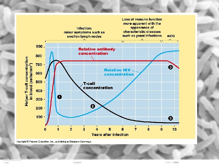 • HIV is a retrovirus – contains RNA as its genetic material – reproduce by transcribing RNA to DNA (using reverse transcriptase) and then inserting the DNA into the chromosome of a host cell – eventually the infected cell begins transcribing and translating the viral DNA and more viruses are produced that enter into the bloodstream – proliferating viruses eventually kill the host helper T cell – as the number of helper T cells decline, the lymphocytes are no longer signaled to act during an invasion and the victim no longer produces sufficient antibodies to fight diseases