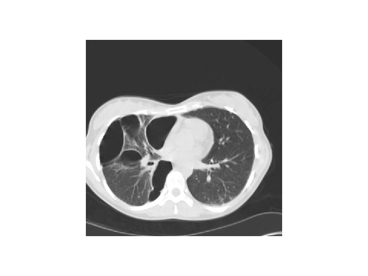 • Quelques mois plus tard : AEG, douleur basithotacique droite, dyspnée • Épanchement pleural droit 3/4 de l’hémichamp