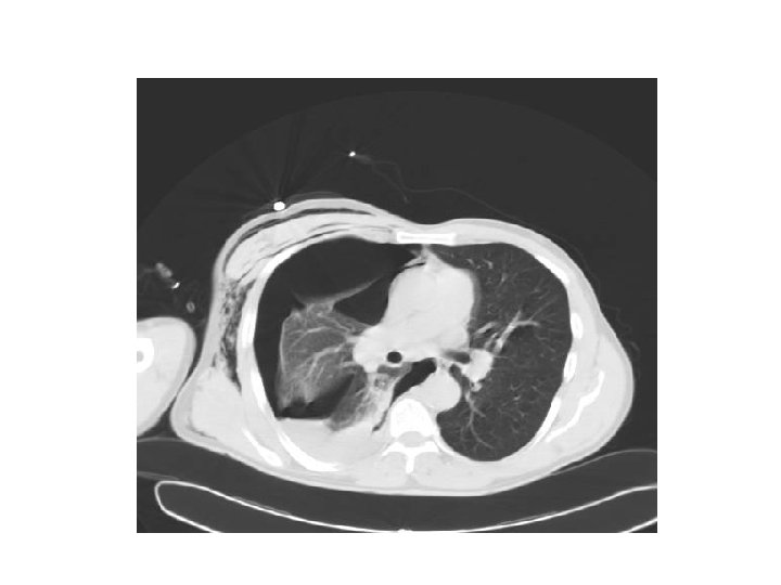 Cas clinique 2 • • • M O. , 55 ans, douleur thoracique droite, brutale, non fébrile tabagisme à 50 PA, sevré il y a 1 an diminution du murmure vésiculaire crépitement sous cutané