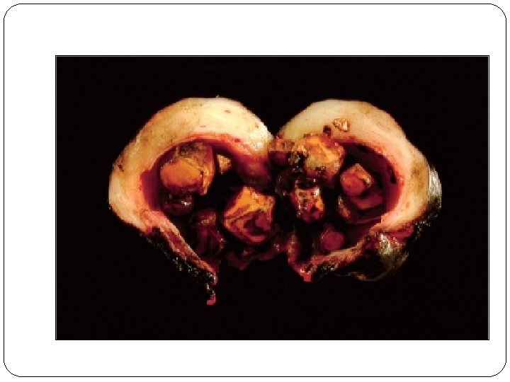Prevalence and Risk Factors of gallstones Cholesterol Stones � Demography: Northern Europe, North and South America, Native Americans, Mexican Americans � Advancing age � Female sex hormones: �Female gender �Oral contraceptives �Pregnancy � Obesity and insulin resistance � Rapid weight reduction � Gallbladder stasis � Inborn disorders of bile acid metabolism Pigment Stones � Demography: Asian more than Western, rural more than urban � Chronic hemolysis (e. g. , sickle cell anemia, hereditary spherocytosis) � Biliary infection � Gastrointestinal disorders: ileal disease (e. g. , Crohn disease), ileal resection or bypass, cystic fibrosis with pancreatic insufficiency