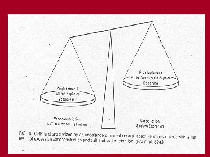 Chronic heart failure (CHF) is characterized by an imbalance of neurohumoral adaptive mechanisms with a net results of excessive vasoconstriction and salt and water retention Catecholamines : - concentration in blood : - norepinephrin – 2 -3 x higher at the rest than in healthy subjects - circulating norepinephrin is increased much more during equal load in patients suffering from CHF than in healthy subject - number of beta 1 – adrenergic receptors sensitivity of cardiomyocytes to catecholamines contractility System rennin – angiotensin – aldosteron heart failure CO kidney perfusion stim. Of RAA system