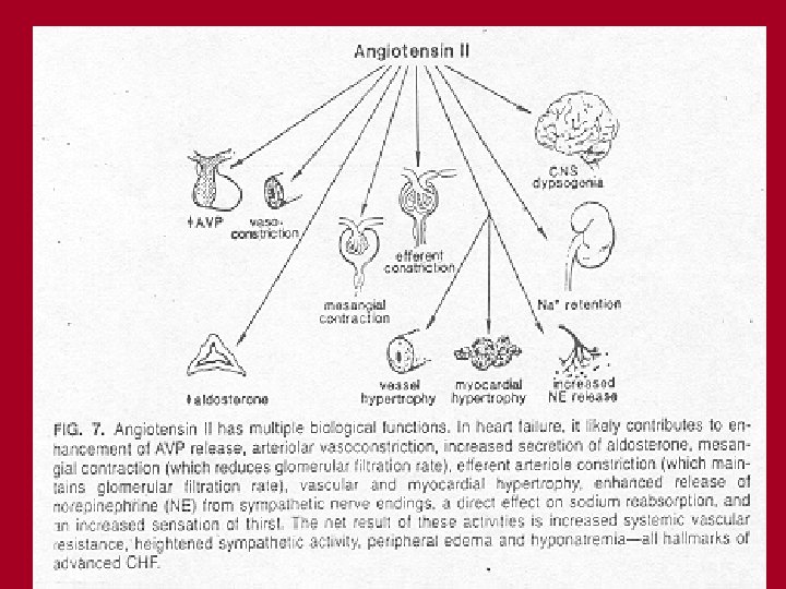 Important: Catecholamines and system RAA = compensatory mechanisms heart function and arterial BP The role of angiotensin II in development of heart failure vasoconstriction ( in resistant vesels) retention of Na blood volume releasing of arginin – vasopresin peptide (AVP ) from neurohypophysis