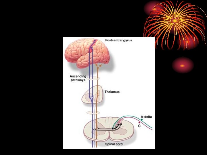 Nociceptive Pain Mechanisms • The detection of tissue damage by specialized transducers connected to A -delta and C-fibers • Anatomically, this process occurs predominantly peripherally and involves the nociceptor neurons, which terminate in the dorsal horn of the spinal cord.
