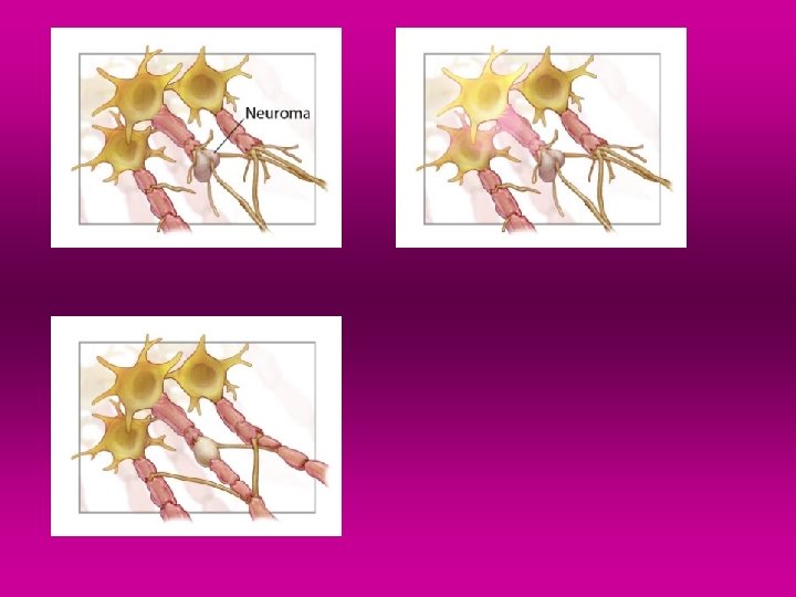 Common clinical forms of neuropathic pain Peripheral neuralgias after trauma or surgery lumbosacral and cervical rhizotomy, ● peripheral neuralgia Most peripheral neuralgias are the result of trauma or surgery. Such a conditions does not necessary occur as a result of damaging a major nerve trunk but may be caused by an incision involving only small nerve branches (incisional pain) Mechanism: the pain is due to neuroma formation in the scar tissue (? )