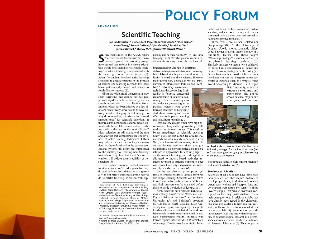 Scientific Teaching Active is learning by doing Assessment is evidence Diversity is science for all. . .