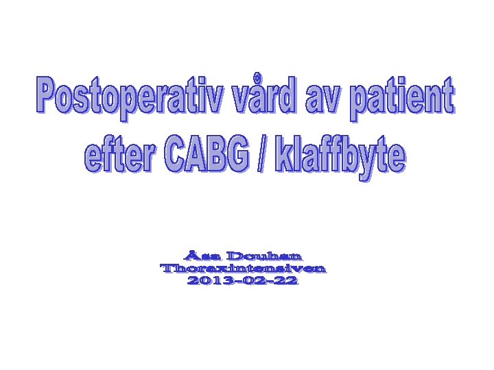 Postop. information inför hemgång • • • efter 1 -2 dagar flyttar pat. till vårdavd. utskrivning från vårdavd. efter ca. en vecka ej bilkörning första månaden efter op. ej bära tungt, (< 2 kg. ) första 3 mån. efter 3 mån. lätt arbete