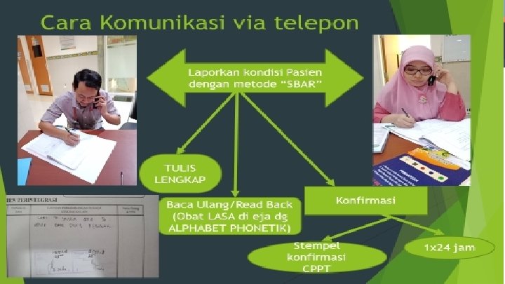 MAKSUD DAN TUJUAN q Komunikasi efektif akan mengurangi kesalahan dan menghasilkan peningkatan Keselamatan Pasien q Komunikasi efektif 1. tepat waktu 2. akurat 3. lengkap 4. jelas (tidak mendua/ambiguous) 5. dipahami oleh penerima 6. Meningkatkan keselamatan pasien