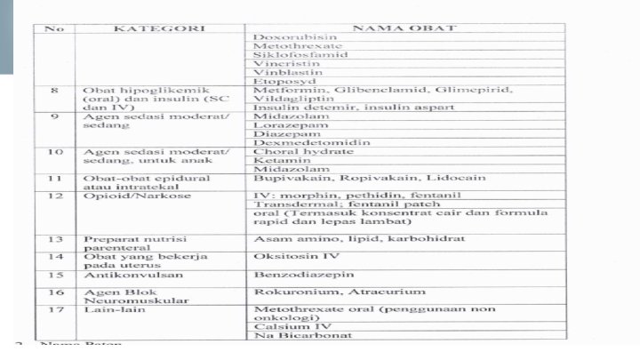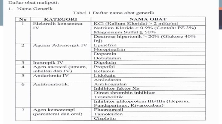 Maksud dan Tujuan � Obat yg Perlu diwaspadai : Obat yang mengandung risiko yang meningkat bila kita salah menggunakan dapat menimbulkan kerugian pasien yang sangat signifikan, seringkali merupakan kesalahan yang umum terjadi. � Obat yg Perlu diwaspadai : 1. NORUM/ LASA. 2. Elektrolit konsentrat � Kesalahan bisa terjadi : - Secara tidak sengaja. - Bila perawat tidak mendapatkan orientasi sebelum ditugaskan - Pada keadaan gawat darurat