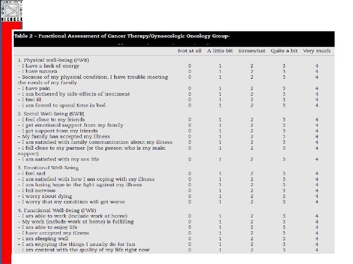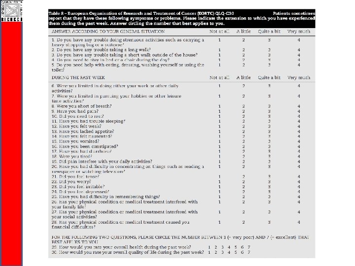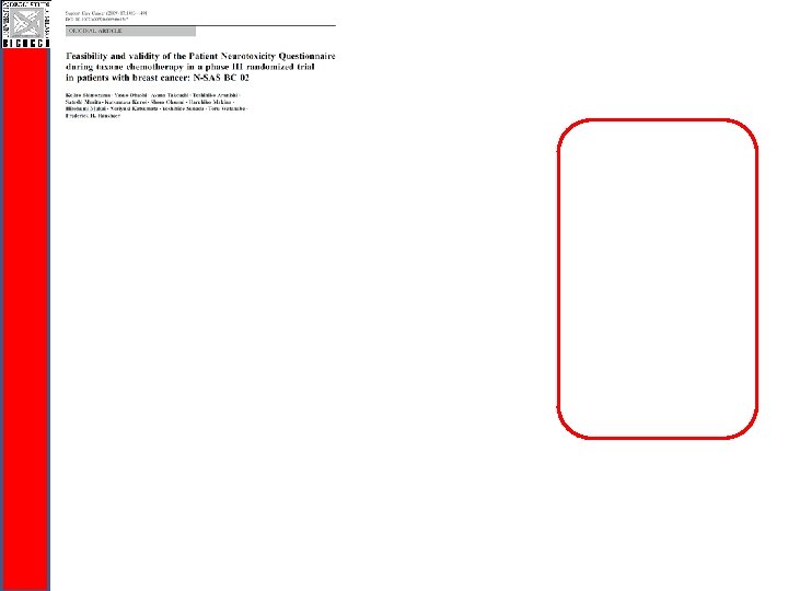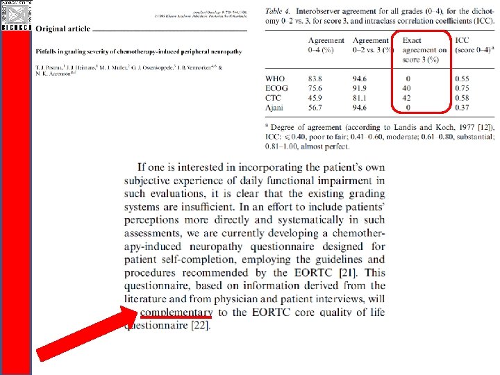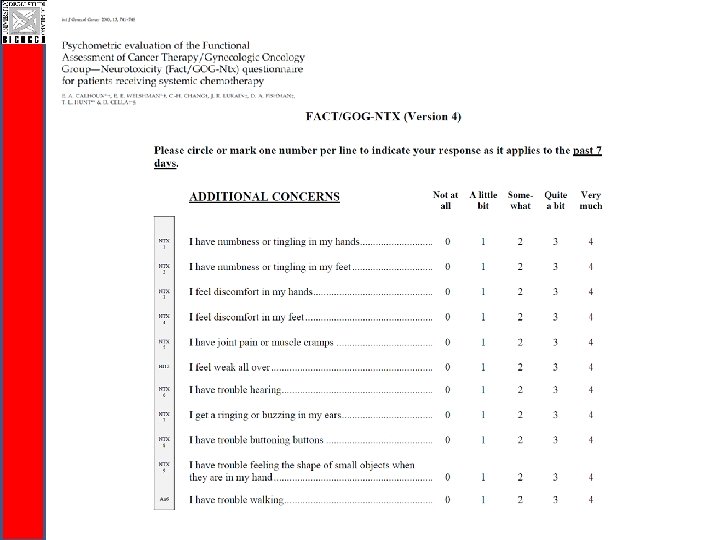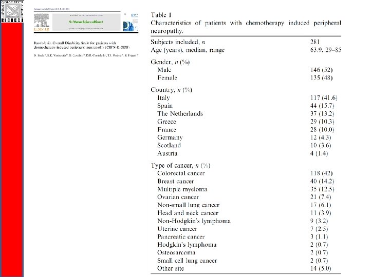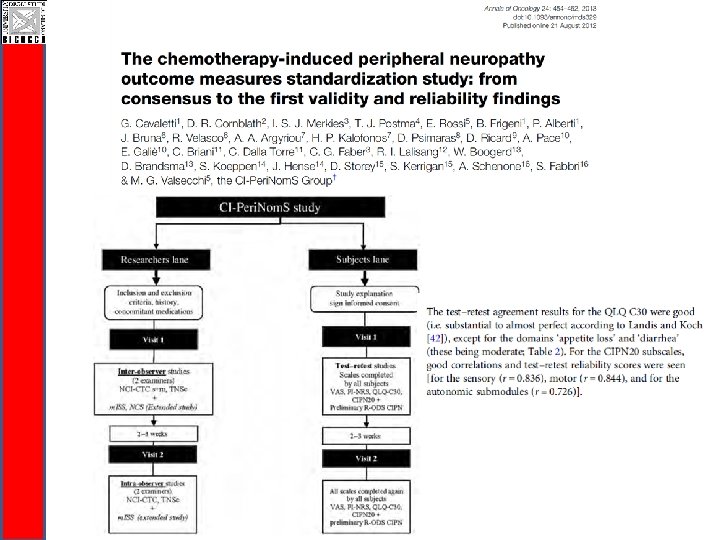 CI-Perinoms RODS-CIPN Study q Easy to be completed and communicable q Valid and reliable disability outcome measure q Responsiveness needs to be evaluated (ongoing!) q Disability is a generic terms: q RODS-CIPN for activity limitations and participation restrictions level q Total Neuropaty Score for impairment level