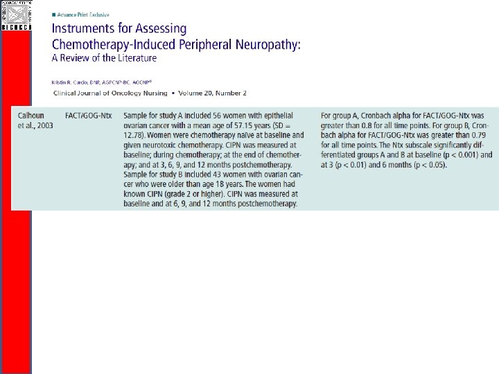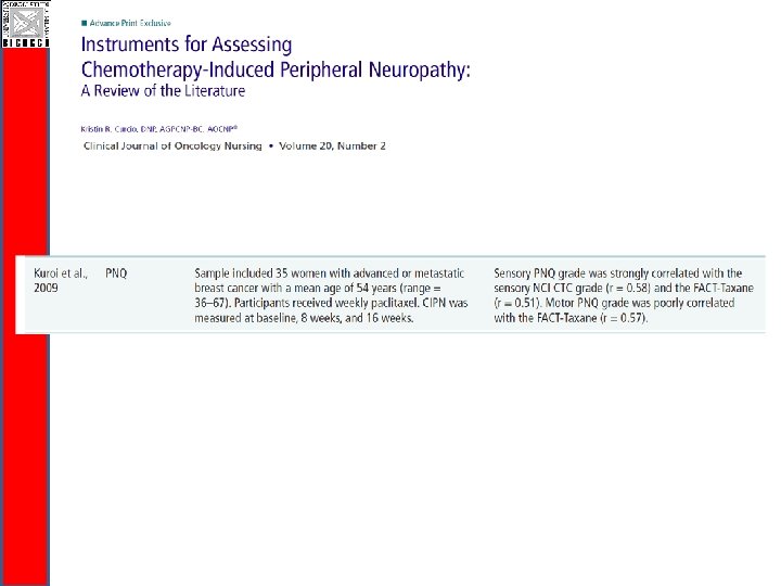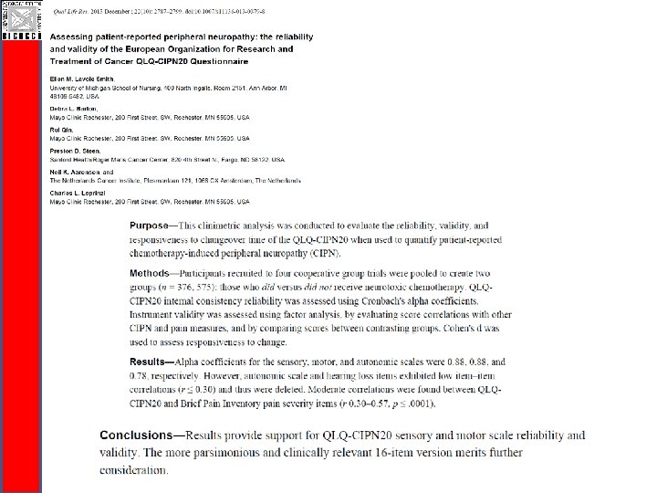 CI-Perinoms Study CIPN assessment q. Current physician-based measures are inadequate: § Mix of disability and Quality of Life items § Items not unambiguously described § Lack of clinimetric evaluation.