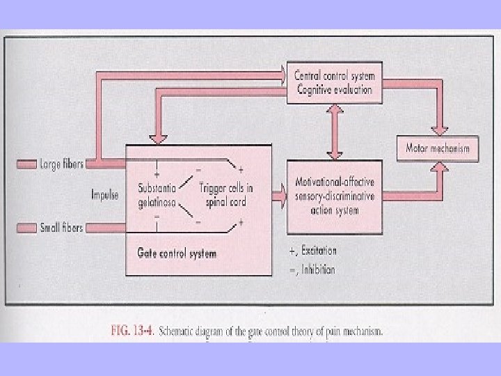 • Tieto štruktúry môžu byť aktivované z kôry mozgu (poznané nebezpečia získané procesom učenia sa) alebo bolestivou aferentáciou z periférie, ktorá prenikne až do oblasti uvedených štruktúr • Tieto stimuly dokážu aktivovať nervové bb. uvedených štruktúr a z nich vychádzajúce eferentné vlákna, ktoré inhibujú prenos bolesti tak na úrovni zadných miechových rohov, ako aj na úrovni mozgového kmeňa