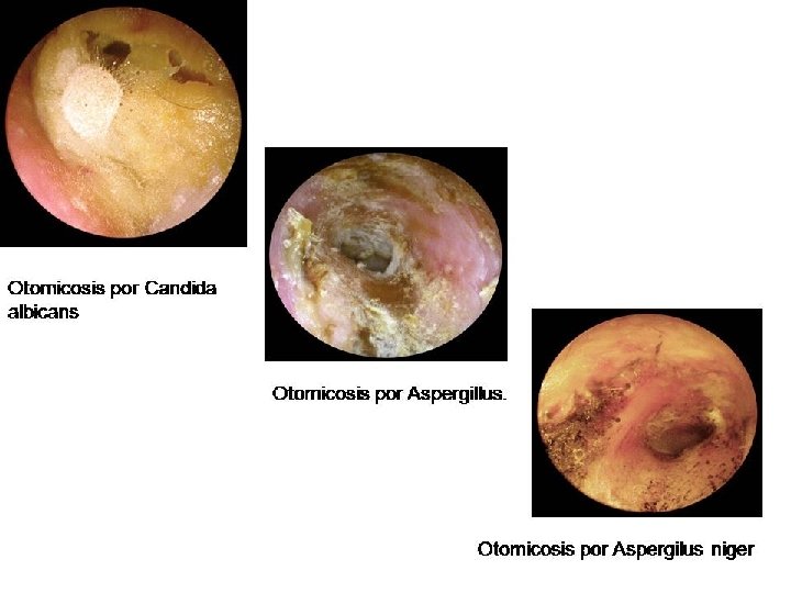 Otitis externa por hongos. Otomicosis Otitis externa producida por hongos saprofitos oportunistas. Los más habituales: cándida, aspergillus. Al igual que anterior más frecuente en verano. Otitis externa cronificada o uso prolongado de ATB tópica puede favorecer su aparición. Síntoma más llamativo prurito muy intenso, luego sensación dolorosa y otorrea sero-sanguinolenta no muy intensa.