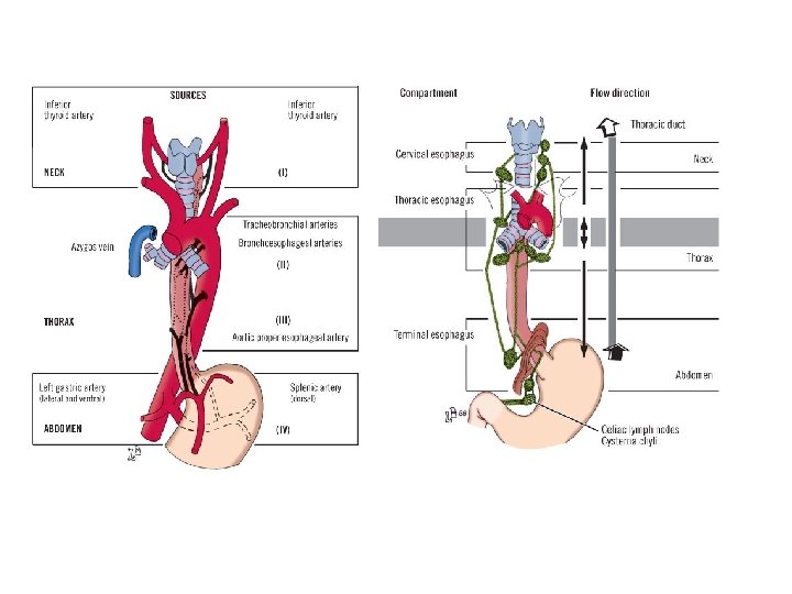 GENERALIDADES • Longitud: 22 -28 cms, 2 cms menor en mujeres • Mas comúnmente medida en EGD desde las arcadas dentarias: 40 cms • Estrecheces fisiológicas: cricofaringeo, arco aórtico, EEI • Tres capas: muscular externa (musculo estriado vs. liso – puntos débiles), epitelio escamoso, submucosa • Anatomia arterial, venosa, linfatica