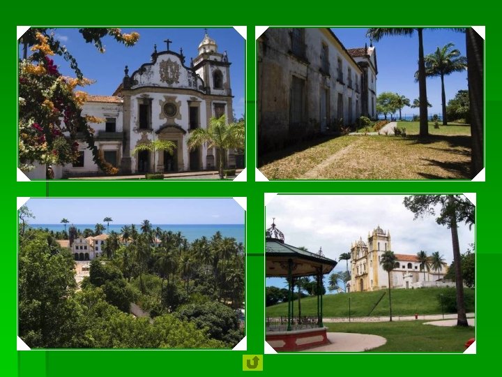 1982 Centro Histórico da Cidade de Olinda – Fundado no século XVI pelos portugueses, sua história é ligada à indústria de cana de açúcar. Reconstruída depois de ser saqueada pelos holandeses, sua principal estrutura de construção urbana data do século XVIII. O balanço mantido entre as construções, jardins, as vinte igrejas barrocas, conventos e numerosos pequenos passos dão a Olinda uma atmosfera particular.
