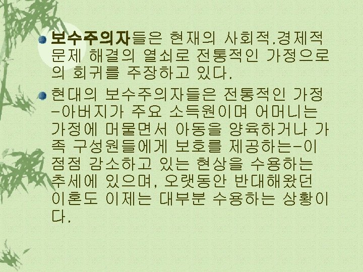 But the corporatist regimes are also typically shaped by the Church, and hence strongly committed to the preservation of traditional family-hood. Social insurance typically excludes non-working wives, and family benefits encourage motherhood. Day car, and similar family services, are conspicuously underdeveloped; the principle of ‘subsidiarity’ service to emphasize that the state will only interfere when the family’s serves to serve its members is exhausted.