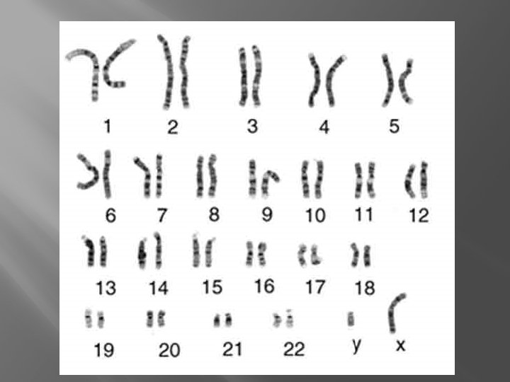 VI. Chromosome #’s � � Karyotype – chart of chromosome pairs Down syndrome: chromosome 21 Trisomy � Higher chance with older mothers