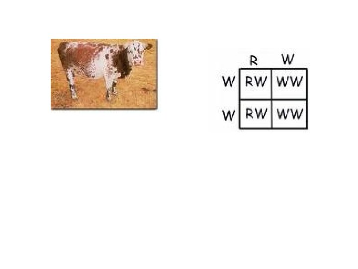 Codominance • Phenotypes of both homozygotes produced in heterozygote. • Neither allele is dominant over the other (both expressed). • Chickens have white feathers, black feathers, and black and white feathers • New allele format: BB = Black feathers (homo) WW = white feathers (homo) BW = Black & White feathers (hetero)