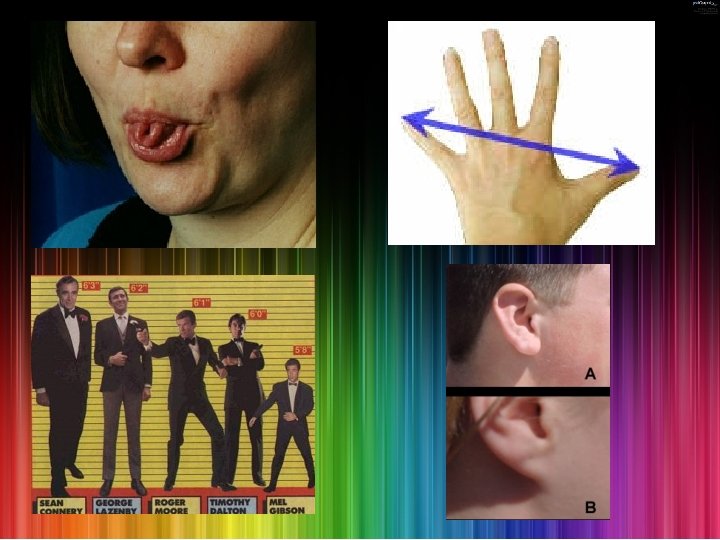 Discrete Variation • variation that is usually limited to two variants. • e. g. tongue roll or non-roll, attached earlobe or unattached earlobe. • controlled by a single gene