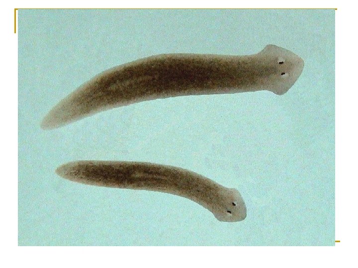 Phylum Platyhelminthes n n 34, 000 species Range from 1 mm or less to 25 m Mostly worm like creatures that are flattened body design Tapeworms, Flatworms, Flukes and Planarian.