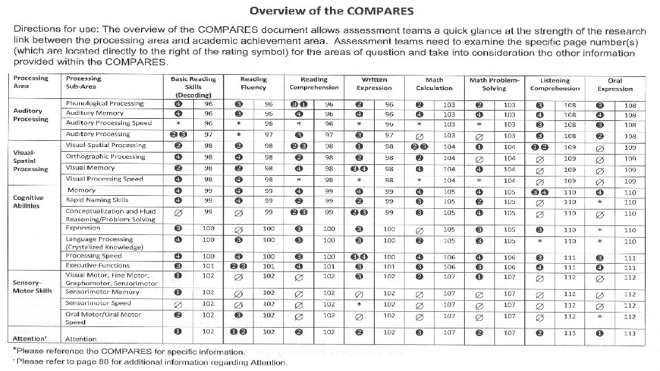 CA Discrepancy Model Discrepancy VS. PSW Model for SLD Identification California Education Code does not specifically state that processing deficit must be related to or linked to the academic achievement deficit. Poway Unified PSW Model the PSW model strongly encourages that the assessment team finds a research-based link between the processing weakness and the academic deficit. PUSD uses the Comprehensive Organizational Matrix of Processing Achievement Relations (COMPARES model) & dr. dehn’s matrix