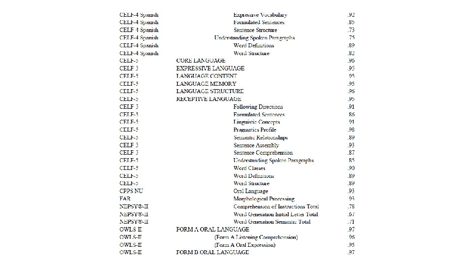 How does this affect me as an SLP? Testing by various service providers often overlaps Crystalized ability/verbal comprehension; oral language processing; listening comprehension; oral expression Do we all need to test all of these areas? Consider planning out testing ahead with sped team so there is not so much overlap Share results in order to make the eligibility determination