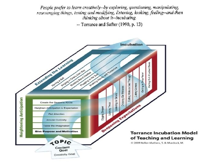 Incubation Model of Teaching • Stage 1 - Heighten Anticipation: – Creative motive to work • Stage 2 - Deepen Expectations: – Information processing • Stage 3 - Extend the Learning: – Apply the project in a real context