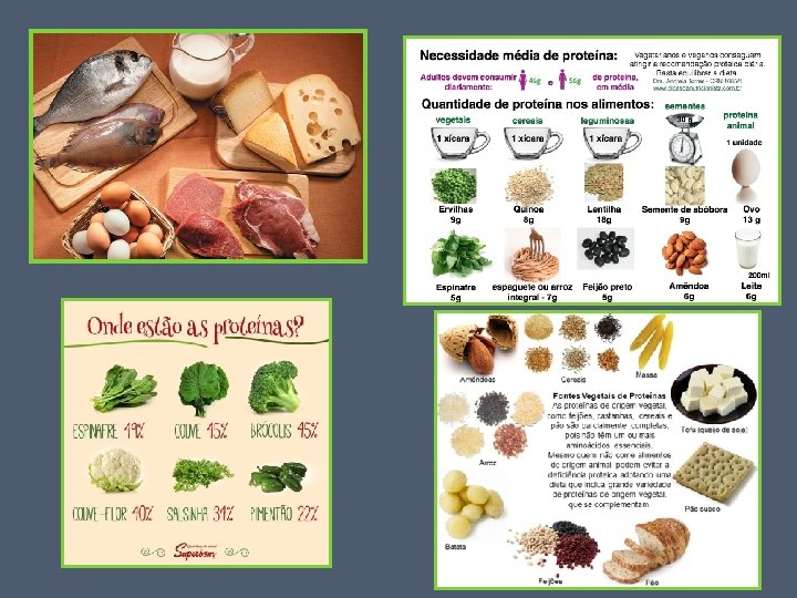Proteínas • Componentes fundamentais de todos os seres vivos, inclusive dos vírus; • Formam várias estruturas das células; • Controlam a entrada e saída de substâncias das células pela membrana plasmática; • Conferem sustentação a muitos tecidos do corpo; • Responsáveis pela contração dos músculos e; • Responsáveis pelo transporte de oxigênio no sangue de muitos animais.
