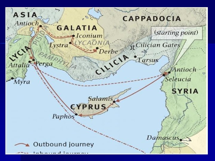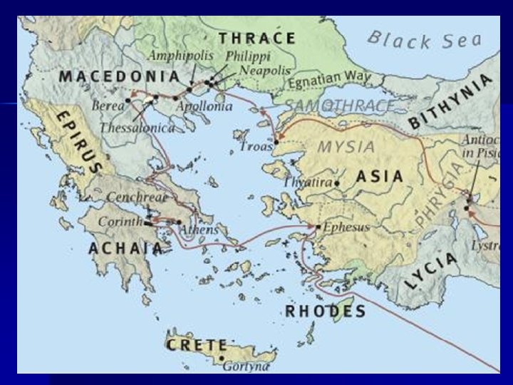II. Paul’s first two missionary journeys A. The first missionary journey (Acts 13 -14) B. The second missionary journey (Acts 15: 3618: 22) 1. 2. 3. 4. 5. 6. 7. 8. 9. Jerusalem Council (Acts 15: 1 -35) Paul and Barnabas separate (15: 36 -41) Timothy joins Paul at Lystra (16: 1 -3) Forbidden to speak in Asia (16: 6) Not permitted to enter Bithynia (16: 7) Paul’s Macedonian vision at Troas (16: 8 -10) Luke added at Troas (“we” – 16: 10 ff. )? A church is planted at Philippi (16: 11 -40). Luke seems to remain in Philippi (16: 40).