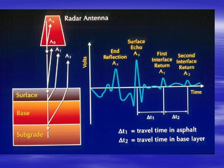 Quality of GPR Data § Blunders – Improper waveform selection – Omitted pavement layers § Systematic errors – Travel time systematic error – Velocity systematic error § Random errors – Error propagation