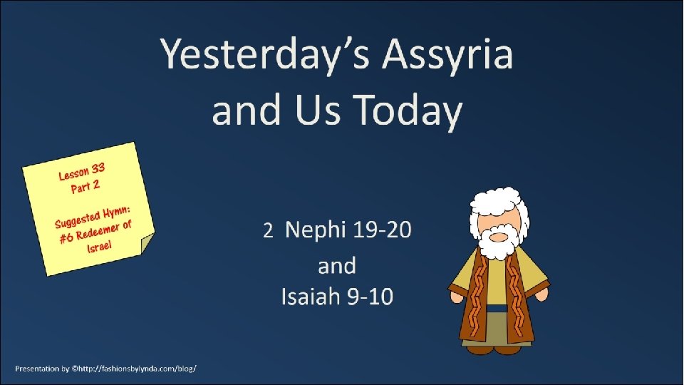 Sources: John Bytheway Isaiah for Airheads Pg. 122 -137 Terry Ball Isaiah and the Book of Mormon audiotape #4 Victor Ludlow Isaiah: Prophet, Seer, and Poet Pg 151 -154 J. Reuben Clark Conference Report April 1939, 104 -5 James E. Faust Finding Light in a Dark World pg 97 Jeffrey R. Holland Prophets in the Land Again Ensign, Nov. 2006, 106– 7 Fred H. Wight Manners and Customs of Bible Lands pg 149 Joseph Smith Teachings of the Prophet pg 330 Ezra T. Benson The Great Commandment—Love the Lord Ensign May 1988 Presentation by ©http: //fashionsbylynda. com/blog/