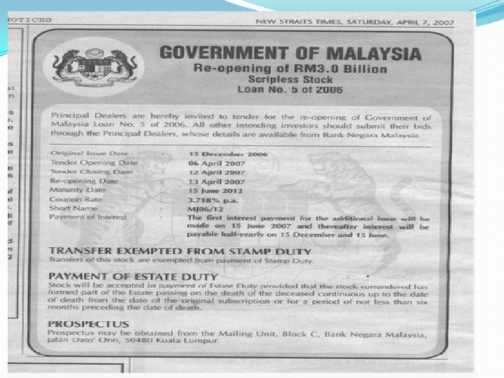 OMO �In Malaysia, OMO is not effective as the public holds very little government securities (less than 3%) because low rate of interest �the largest buyers are the insurance companies