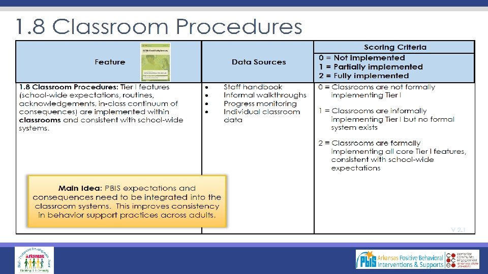 Do It With Fidelity! Tiered Fidelity Inventory (TFI) • Efficient, valid index of extent to which PBIS core features are in place • Section 1. 8 Classroom Procedures