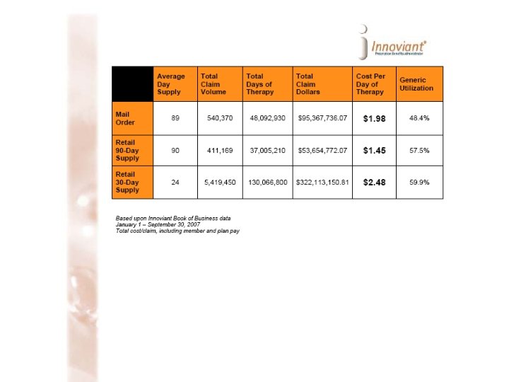 Why ‘Spreads’ on Generics? ? ? l 2003 -2005 – Record number of Brands losing their patents in the history of the prescription drug industry. l By 2016 – Remaining Innovator brands will be losing their patents. l PBMs will be losing hundreds of millions of dollars in annually “kept” drug manufacturer rebates.