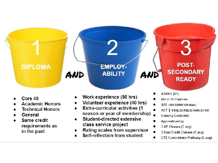 Graduation Pathways • 3 steps to meet requirements 1. Earn a high school diploma 2. Learn and demonstrate employability skills 3. Satisfy postsecondary-ready competencies