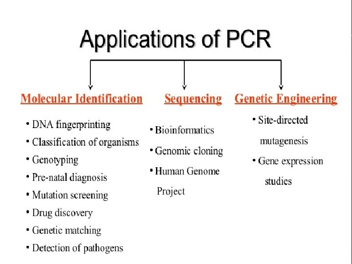 Essential Components of PCR 6. Monovalent Cations üStandard PCR buffer>>>50 m. M KCl>>>amplification of DNA >500 bp üRaising conc. (70 -100 m. M)>>>improves of yield of shorter DNA fragments 7. Template DNA üMay be ss or ds DNA üHigh m. w DNA (>10 kb) is needed to be digest üRecommended initial quantity: mammalian g. DNA (1µg), yeast (10 ng), bacteria (1 ng) & plasmid (1 pg)