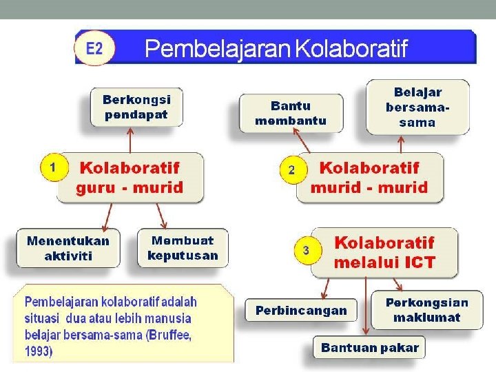 PERBEZAAN DI ANTARA PEDAGOGI KONVENSIONAL & ALAF 21 Dimensi KONVENSIONAL ALAF 21 1. ASAS PEDAGOGI Memberi maklumat Membina maklumat 2. FOKUS PEMBELAJARAN Isi Pelajaran Belajar untuk belajar 3. STRATEGI PEMBELAJARAN Berinteraksi Bekerjasama dan berinteraksi 4. MATLAMAT PEMBELAJARAN kawalan luaran Autonomi 5. TEORI PEMBELAJARAN Tingkah laku kognitif Mengajar Fasilitator 6. PERANAN GURU