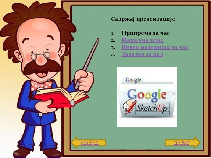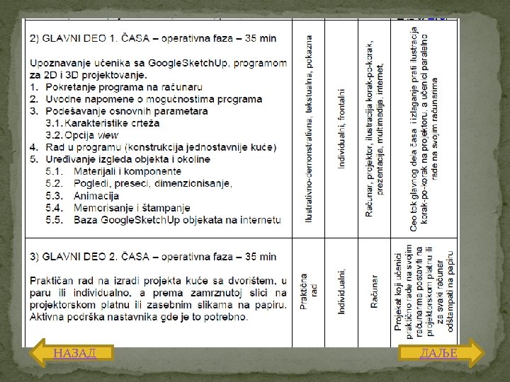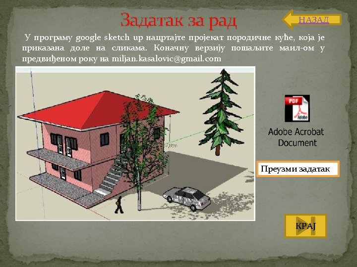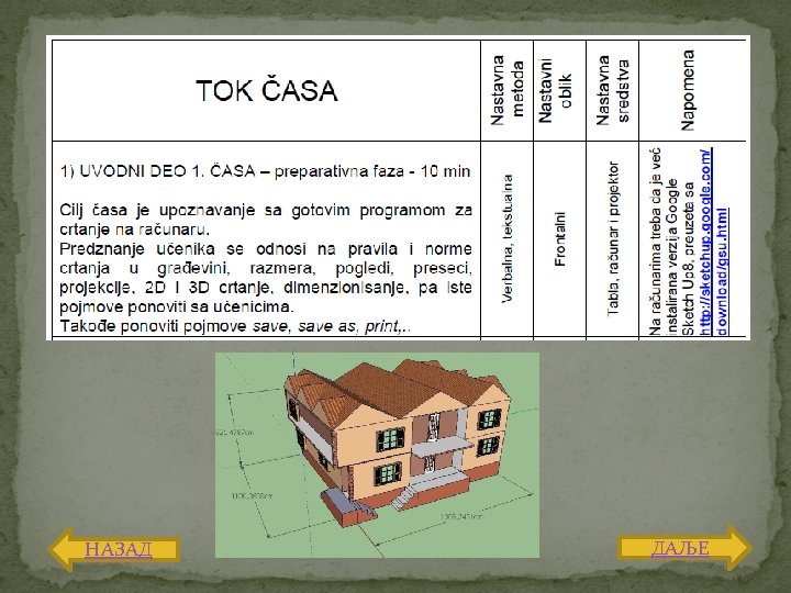 НАЗАД Видео туторијал програма Goоgle. Skеtch. Up http: //www. youtube. com/watch? v=ux 3 wy. Uj. XFGU&feature=youtu. be ДАЉЕ