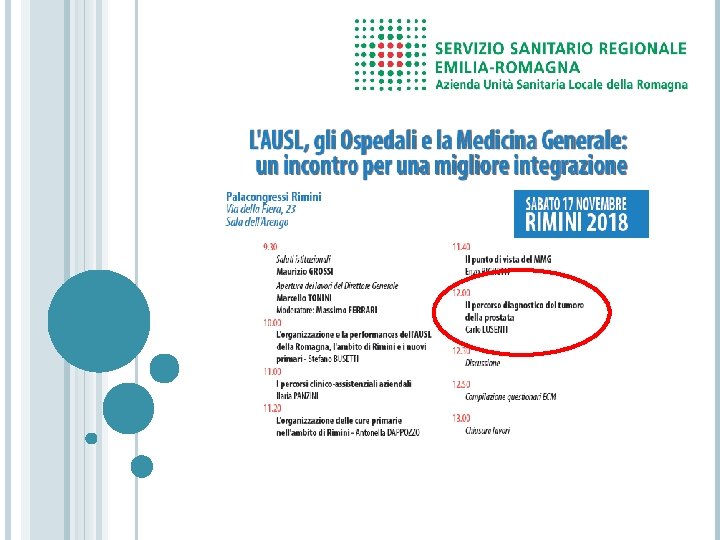 COMPOSIZIONE GRUPPO DI LAVORO PDTA CAP Percorso clinico-assistenziale Prostate Unit (Approccio Globale al Tumore della Prostata) Roberta Gunelli - Massimo Fiori - Antonio Aliberti Urologia Forlì Carlo Lusenti (referente clinico aziendale) - Giacomo Cicchetti Urologia Cesena Roberto Montanari - Luca Ronci Urologia Rimini Salvatore Voce - Giorgio Bruno Urologia Ravenna Chiara Benedetti (referente organizzativo aziendale) D. S. Cesena Umberta Dradi (referente organizzativo aziendale) D. I. T. Cesena Giovanni De Luca Anatomia Patologica Cesena Paolo Maltoni Patologia Clinica Pievesestina Cavagna Enrico - Roversi Marina Radiologia Rimini Francesco Carrozza Oncologia Faenza Francesco Perini Radioterapia Rimini Michela Casi Med. Nucleare Cesena Luca Santini Metodologo Mauro Palazzi Epidemiologo Ilaria Panzini Ufficio Ricerca Amelia Altavilla Oncologia IRST Ugo De Giorgi Oncologia IRST Sarah Pia Colangione Radioterapia IRST Salvatore Roberto Bellia Radioterapia IRST Fabio Ferroni Radiologia IRST Federica Matteucci Medicina Nucleare IRST