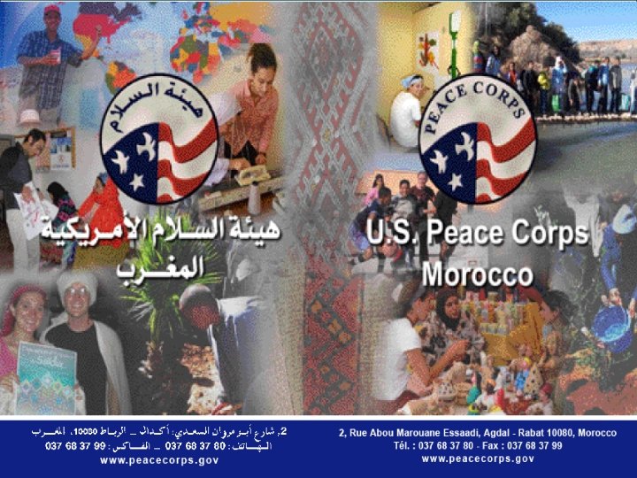 ، ﺃﻜﺪﺍﻝ ، ﺷﺎﺭﻉ ﺃﺒﻮ ﻣﺮﻭﺍﻥ ﺍﻟﺴﻌﺪﻱ ،2 10080 – ﺍﻟﺮﺑﺎﻁ Peace Corps Morocco 2 Rue Abou Marouane Essaadi, Agdal Rabat - 10080 Tel. 05 37 68 37 80 : ﺍﻟﻬﺎﺗﻒ www. peacecorps. gov
