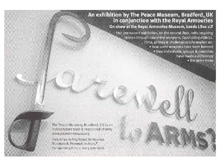 The Peace Museum, Bradford, U. K. , has art and artefacts of peace movements