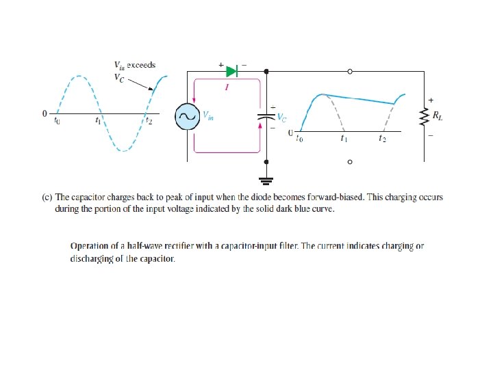 Ripple Voltage Is the variation in the capacitor voltage due to • the charging and discharging. Half-wave ripple voltage (blue line).