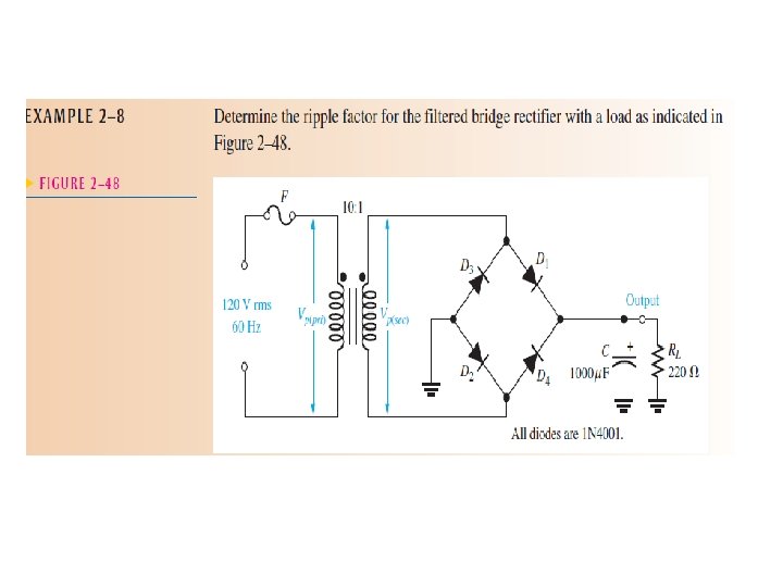 Ripple Factor The ripple factor (r) is an indication of the • effectiveness of the filter and is defined as where Vr(pp) is the peak-to-peak ripple voltage and VDC is the dc (average) value of the filter’s output voltage
