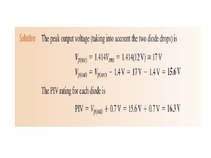 Peak Inverse Voltage Peak inverse voltages across diodes D 3 and D 4 in a bridge rectifier during the positive half-cycle of the secondary voltage.