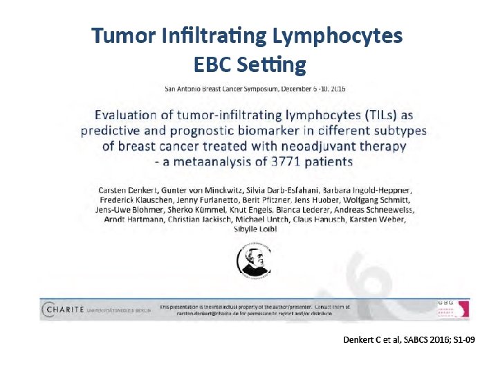 Clinical implications of somatic mutations in post-menopausal early-stage estrogen receptor (ER)-positive, HER 2 -breast cancer: Results from the BIG 1 -98 study Serene Loi, et al. Loi S, et al. SABCS 2016. Abstract S 1 -10