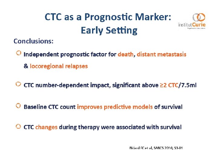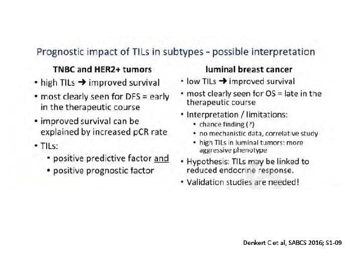Role of Surrogate Markers in Clinic - TILS : strong marker of outcome in TN and HER 2 BC: ready to use in IHC - CTCs are still a solid predictive and prognostic surrogate marker in BC - Potential Role of s. PI 3 KCAmut (tissue/cf. DNA) in BC and response to HT - Less positive impact of mi. RNAs in Clinic - Investigation in MBC (tissue/cf. DNA) with regards to the HT and TKIs of - ERS 1 - Rb 1
