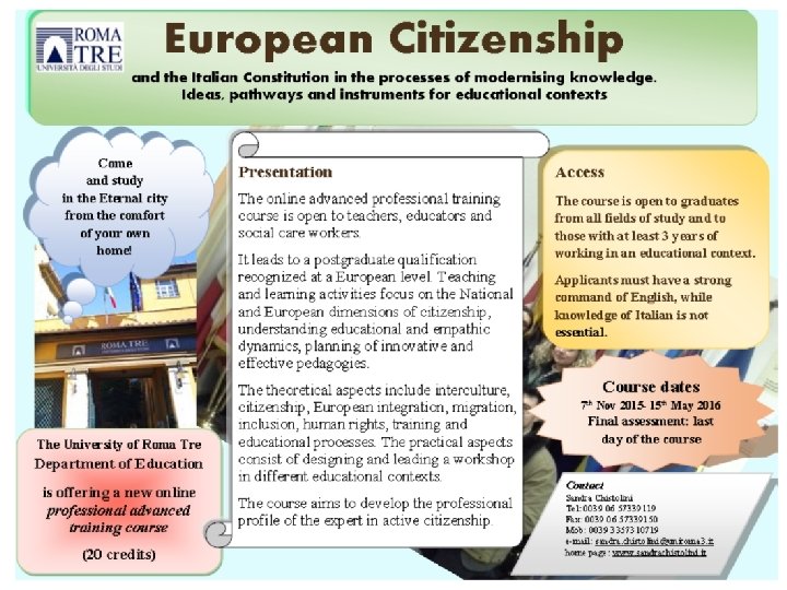Due brevi articoli per cominciare 2015: Ogni bambino ha diritto all’educazione. La mobilitazione in Germania a favore dei bambini rifugiati, in http: //www. lazio. tv/home/index. php? option=com_content&view=article&id=124: ogni- , bambino-ha-diritto-all-educazione&catid=21&Itemid=137 01 ottobre . 2015: Università Roma Tre - Corso di Perfezionamento 2015 -16 Cittadinanza e Costituzione, in http: //www. lazio. tv/home/index. php? option=com_content&view=article&id=98: u , niversita-roma-tre-cittadinanza-e-costituzione&catid=21: news&Itemid=137 2 settembre.