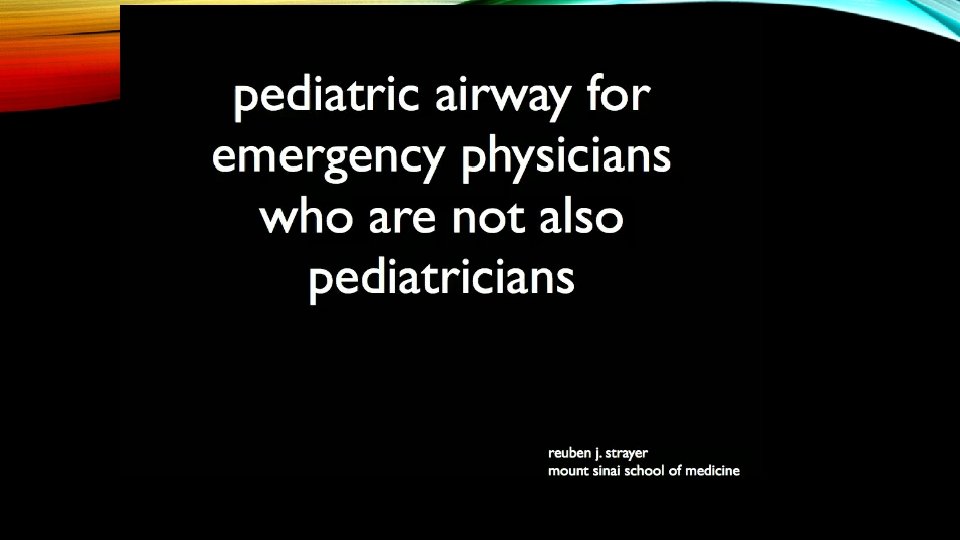 PEDIATRIC AIRWAY MANAGEMENT The next slide is a video by Reuben Strayer on Pediatric airway management.