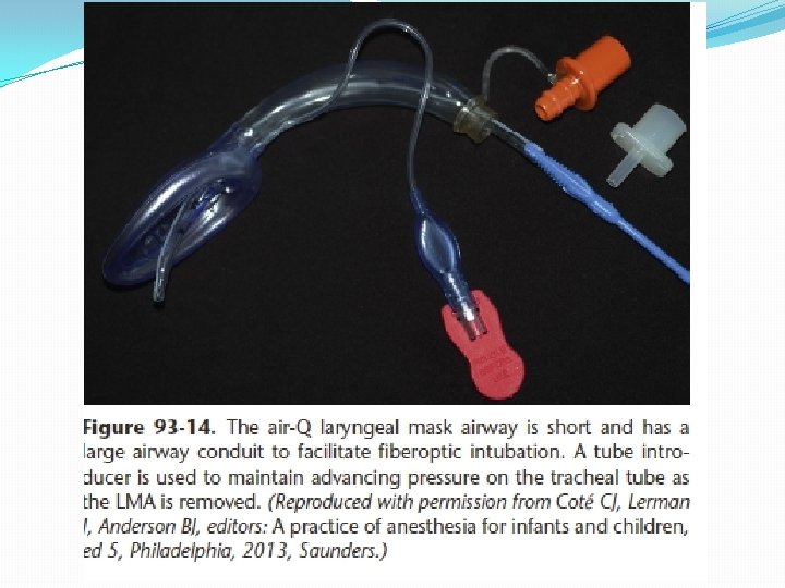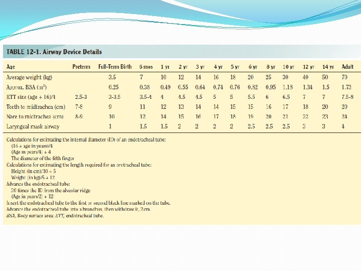 q. More anatomical fit q. Sealing at low pressures q. More distal position q. Greater permeability for nitrous oxide Micro-cuff ETT q. For neonates ≤ 3 kg and infants ≤ 1 year, ID 3. 0 -mm q. For children 1 to 2 years of age, ID 3. 5 -mm q. For children ≥ 2 years, ID (mm) = age/4 + 3. 5 q. Post-intubation croup was 0. 4% (2/500 children)