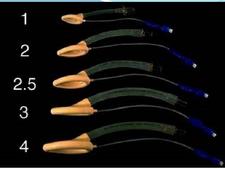 LMA sizes Mask size Patient’s weight Maximum cuff volume (ml) (Least effective volume) Largest TT (mm ID) 1 1 -5 kg 4 3. 5 1. 5 5 -10 kg 7 4. 0 2 10 -20 kg 10 4. 5 20 -30 kg 14 5. 0 3 > 30 kg 20 6. 0, non-cuffed