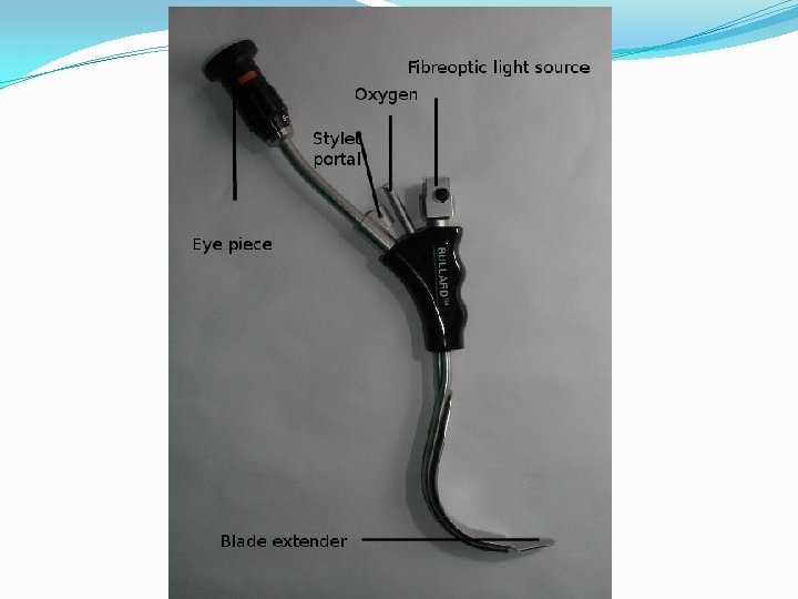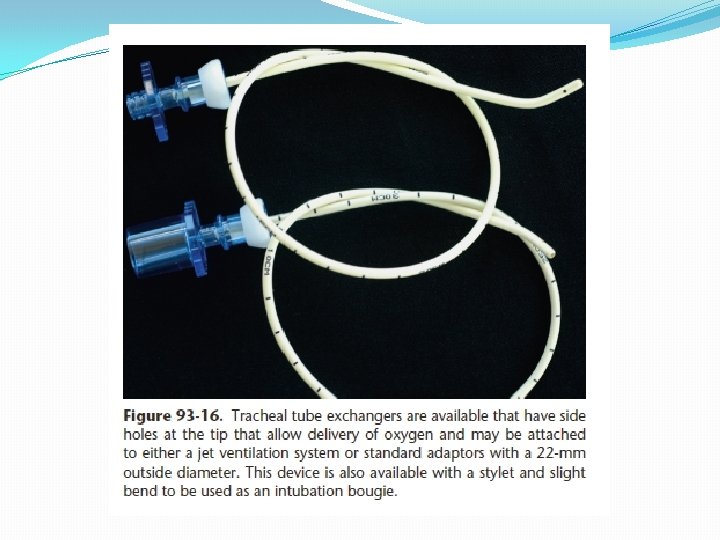Bougie �Replaces stylet �Able to use with poor view �Feel tracheal rings �Feel carina �Intubate over it �Keep blade in place �Two person technique �Need to practice